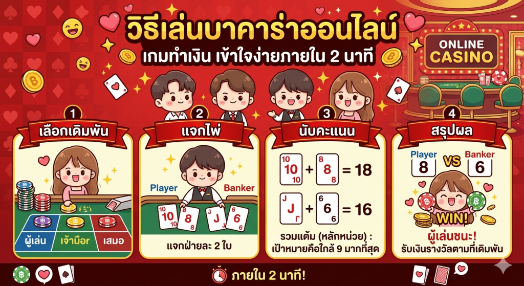 สำหรับผู้ที่กำลังมองหาเกมคาสิโนที่เล่นง่าย ใช้เวลาไม่นาน และมีความสนุกในทุก ๆ รอบ บาคาร่าออนไลน์ถือเป็นอีกหนึ่งตัวเลือกที่น่าสนใจ และหากศึกษาเกมให้เข้าใจก่อนเริ่มเล่น ก็จะทำให้ประสบการณ์ในการเล่นมีความสนุกมากยิ่งขึ้น